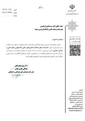 از متن نامه: «نظر به سوابق مؤثر اجرايى وروحيه همكارى و همدلى با دانشجويان، به...
