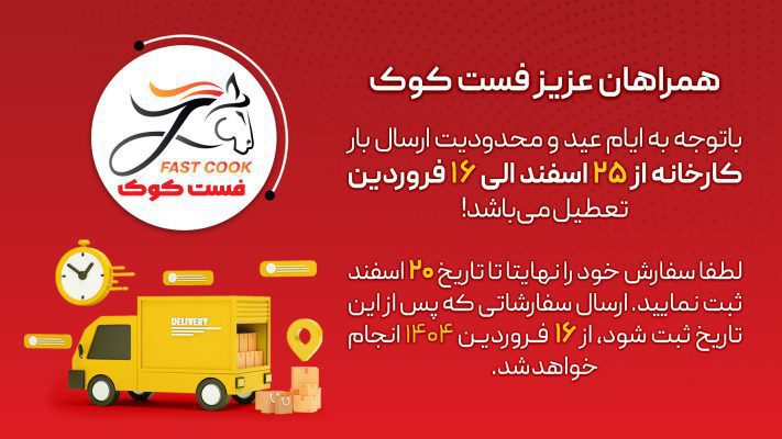 آخرین فرصت ثبت سفارش در سال 1403:با توجه به ايام عید و محدوديت ارسال بار،...