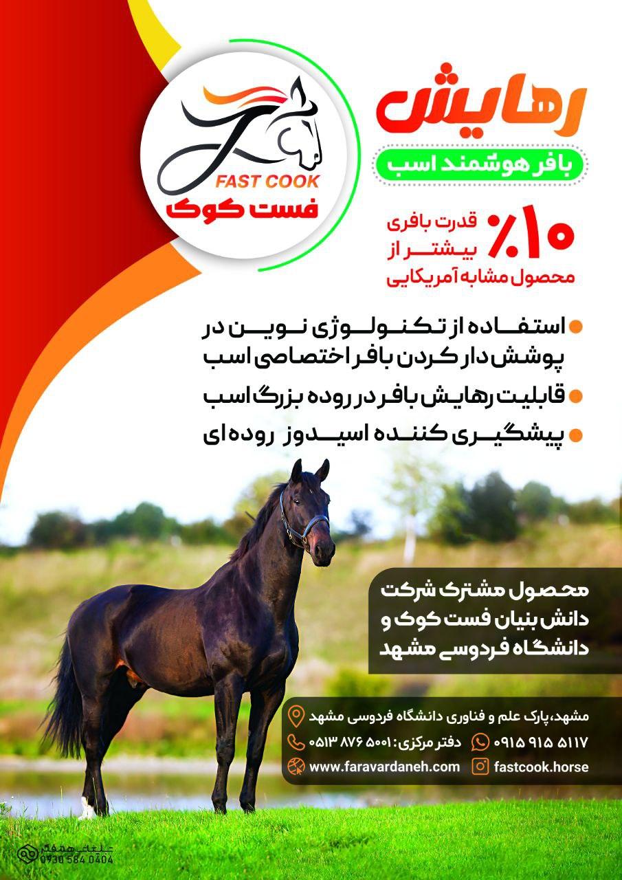 محصول جدید شرکت دانشبنیان فرآوردانه فردوسی مشهد با عنوان بافر رهایش در پی دفاع پایاننامه کارشناسی ارشد آقای مهندس فواد حسینزاده، دانشجوی رشته تغذیه دام گروه علوم دامی دانشگاه فردوسی مشهد رونمایی شد. این پایاننامه با حمایت مادی گروه دانشبنیان فستکوک تحت راهنمایی آقای دکتر سیدهادی ابراهیمی و مشاوره آقای دکتر عبدالمنصور طهماسبی طی مدت ۲ سال انجام شد. حمایت از این پایاننامه در قالب قرارداد پژوهشی شرکت دانشبنیان فرآوردانه فردوسی مشهد مستقر در پارک علم و فناوری با دانشگاه فردوسی مشهد صورت پذیرفت. بافر آهسته رهش رهایش برای آزادسازی هوشمند در روده بزرگ اسب طراحی و تولید شده و توانست در آزمایشات انجام شده با محصول مشابه آمریکایی اکویی شور رقابت کند.